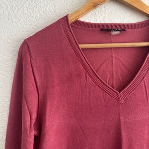 Cable & Gauge Pink V-Neck Sweater Lightweight Knit