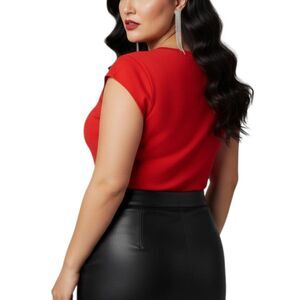 Cable & Gauge Red Chain Embellished V-Neck Short Sleeve Blouse Crop Top Sz M