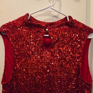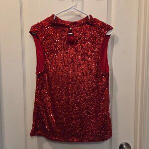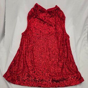 Cable & Gauge Red Sequin Mock Neck Shell Top - Sparkle & Stretch - Size Large