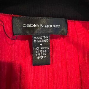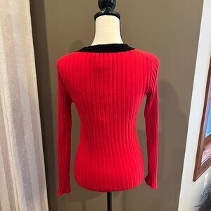 Cable & Gauge Red/Black Form fitting sweater with gold trimmed buttons, Size Med