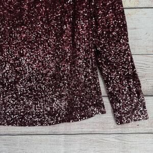 Item: Cable & Gauge Sequined Keyhole Long Sleeve Blouse Womens Small Red Ombre NEW