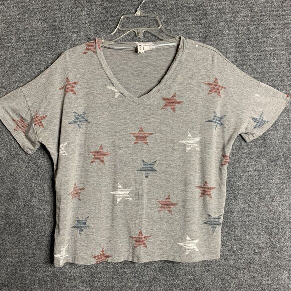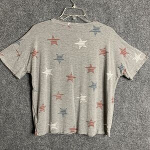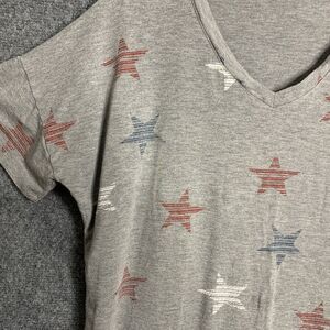 Cable & Gauge Short Sleeve Patriotic Star T-Shirt Women L Red White Blue On Gray