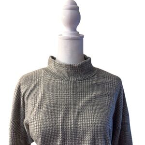 Cable & Gauge Size Large Plaid Knit Sweater Dress Mock Neck Long Sleeve Gray