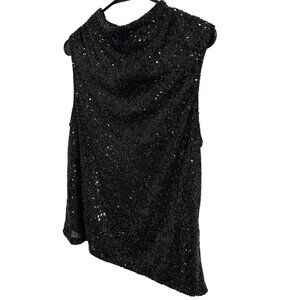 Cable & Gauge Sleeveless Black Sequin Mock Neck Top Size Large Keyhole Back