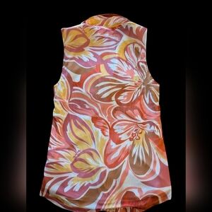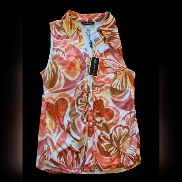 This stylish sleeveless blouse by Cable & Gauge showcases a vibrant orange color with a chic mandarin collar. The ruched detailing adds a touch of elegance, making it a versatile piece for any occasion.