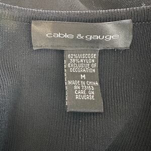 Cable & Gauge Sweater WMNS M Ribbed 3D Flower Button Cardigan Black Round Neck