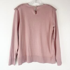 Cable & Gauge Sweater Womens Large Pink Crochet Lace Dainty Feminine Boho L