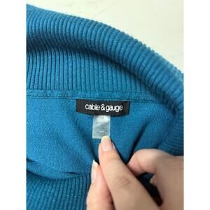 Elevate your office wear with this beautiful Cable & Gauge sweater in women's size 2X. This blue turtleneck features a wide button-up design, perfect for layering and adding a touch of sophistication to any outfit. Coming from a smoke-free and pet-free home.