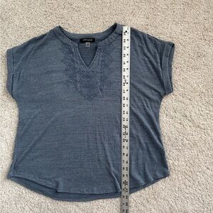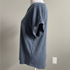 Cable & Gauge Textured Short Sleeve Blue Top Large
