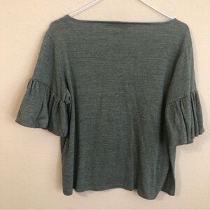 Cable & Gauge Slate Green Grey Puffy Bubble Short Sleeve Wide Crew Neck Top.