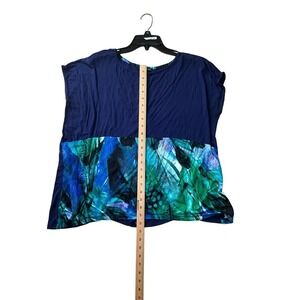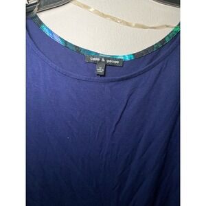 Cable & Gauge Top Women's Medium Blue Viscose Stretch Crew Neck Short Sleeve