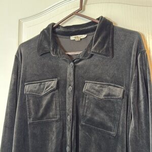 Cable & Gauge Velour Button Down Shirt Shirt Black XL