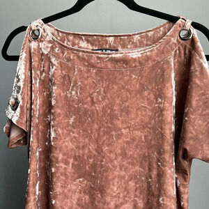 Keywords: Velvet, Fall, Soft Pink, Blush Pink, Velvet Shirt, Open Shoulder, Cold Shoulder, Cable & Gauge