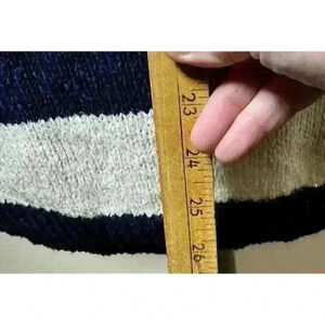 Cable & Gauge White and Blue Striped Long Sleeve Sweater 2X Plus Gold Thread
