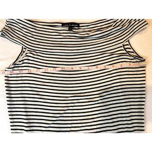 Cable & Gauge Women Cold Shoulder Top Striped Boat Neck Black White Size Medium