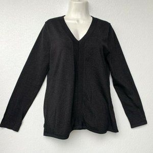 Cable & Gauge Women Sweater Size Large Light Weight Black Silver V Neck Long Sleeve