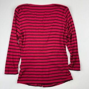 Cable & Gauge Womens Blouse Red Black Stripe Large
