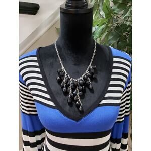 Cable & Gauge Women's Blue Viscose Striped V Neck Long Sleeve Top Blouse Medium