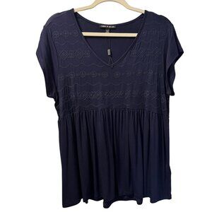 Cable & Gauge Womens Embroidered V-Neck Top Sz XL blouse. NWT
