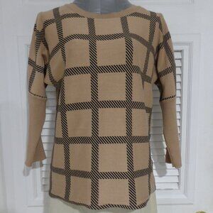 Cable & Gauge Women's Plaid Sweater Tan Black Button Cuffs 3/4 Long Sleeves Sz M