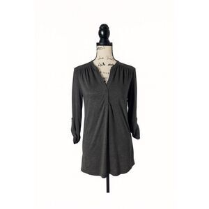 Cable & Gauge Women’s Small Gray Long Sleeve Tunic Top | Button Front Roll Tab Sleeves