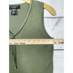 Cable & Gauge Women's Tank Top Size PM Green Sleeveless Rayon Blend Top Tassels