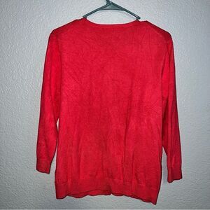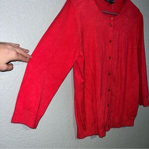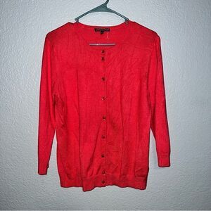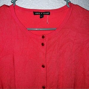 Cable & Gauge Womens Round Neck Long Sleeve Rib Knitted Cardigan Sweater Red XL