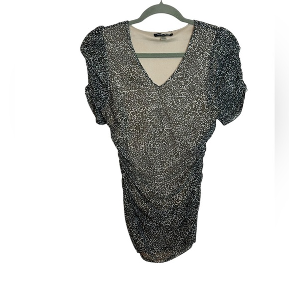 Pre owned like new. Absolutely adorable animal print short puff sleeve ruched blouse. So cute and such a y2k style. Womens size small.