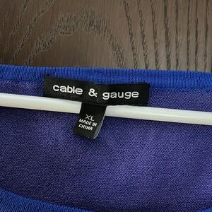 Cable & Gauge bright blue, 3/4 sleeved top with black stripes on the front and bottom of the sleeves only. Scoop neck. Size XL