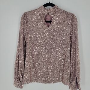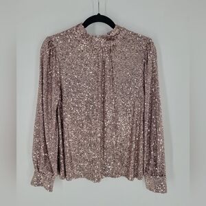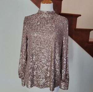 Cable & Gauge hi neck champagne pink sequence top size M