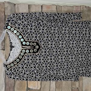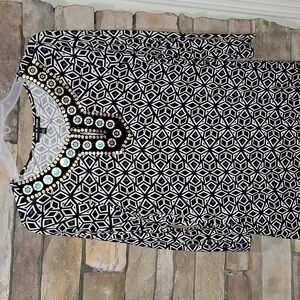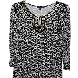 Black and white top with gold sequin neckline shirt with 3/4 sleeves #sequins