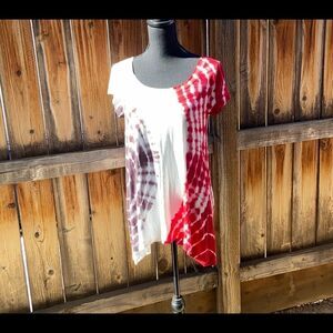 Cable & Gauge top tie dye red purple cream Sz Small FIRM on PRICE