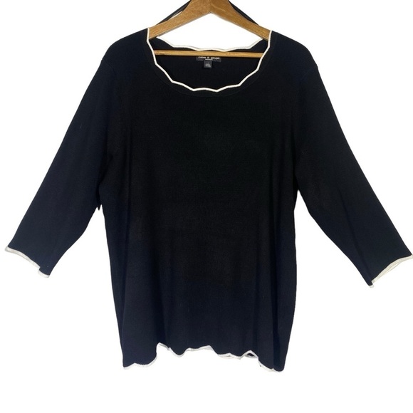 Cable & Gauge women's plus size 1X 3/4 sleeve black knit pullover top