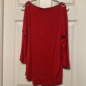 Vibrant red top from Cable & Gauge. Size medium. Open sleeves with silver rings down the sleeve. 3/4 sleeves.