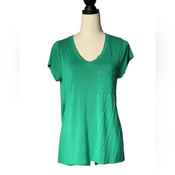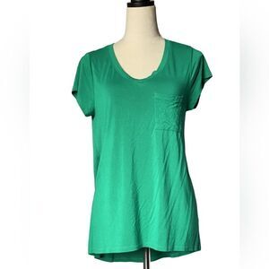 This green top is in great condition, so soft, light and airy with a pocket on the top left side. The description in the photo explains it all! There is a little pilling, but this top is in overall great worn condition.
