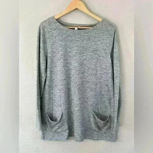 Cable & Gauge-heathered gray long sleeve sweater with 2 front pockets. Mild signs of wear with some mild pilling of fabric. No rips, holes, tears, or stains.