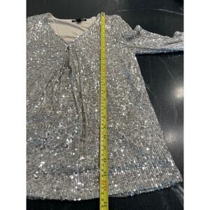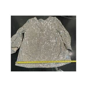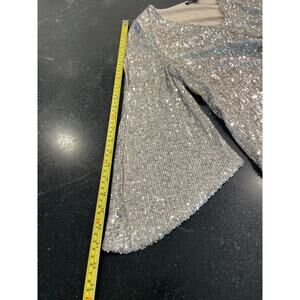 in excellent pre-owned condition. fully sequined top, fully lined in taupe material to ensure comfort. **** Let's talk about how dressy and classy this top can be for special events, holiday etc. So. Much. Shimmer! it shines from every direction so if you don't want to be noticed definitely don't wear this. pairs beautifully with any solid color skirt or slacks and heels or flats. The Flutter sleeves also have a "Cold Shoulder" Slit at the top of the sleeves for added interest