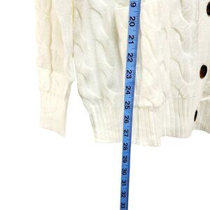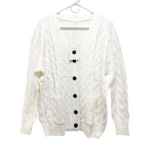 Cable Knit Button-Up Cardigan Sweater Pockets Womens Size 16W Neyook Soft White