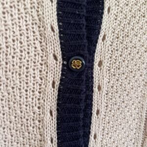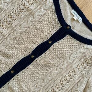 Cable Knit Cardigan Sweater Women's S Cream & Black Preppy Delicate Crochet