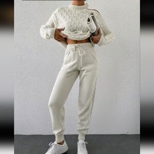 Cable Knit Cut Out Sweater & Drawstring Waist Knit Pants
