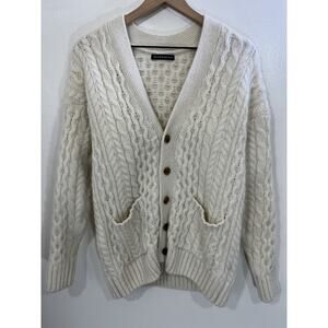 Cable Knit Fisherman Cardigan M Grandma Preppy Coastal Quiet Luxe Minimal Wool Blend Old Money Academia Cozy Professor Cottagecore Pockets Cream Beige.