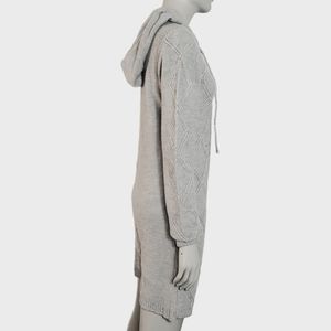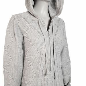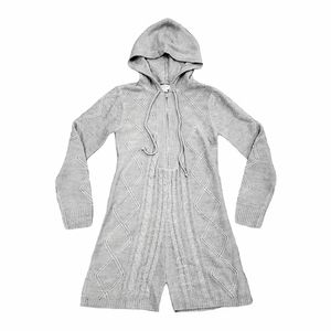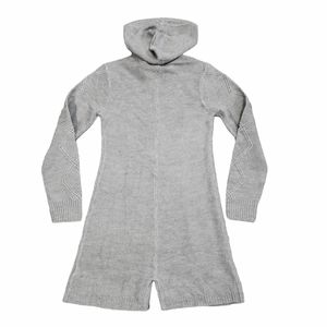 Cable Knit Hooded Romper Womens M Grey No Comment Fitted Long Sleeve 1/4 Zip