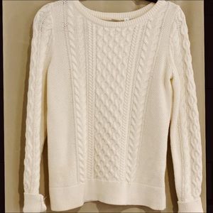 Off white cable crew knit sweater. Cozy and loose fitting. Rib-knit cuffs and rib knit hem.