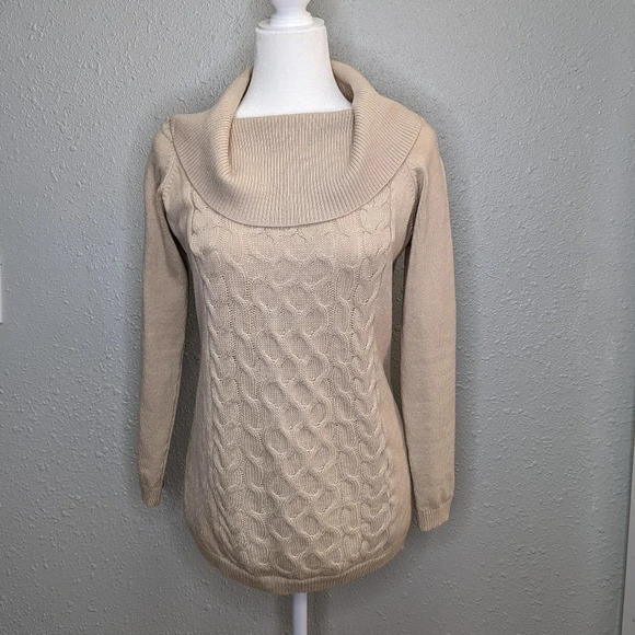 Cable Knit Sweater Cowell Neck Acrylic/ Wool Blend Cream Size Small