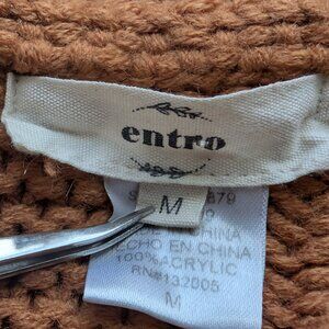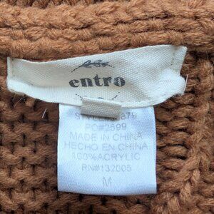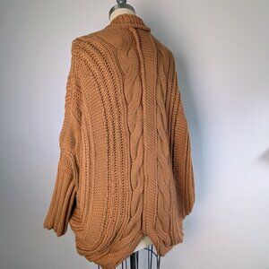 Super cozy coccon style cardigan by the brand Entro in a warm rusted orange color cable knit.