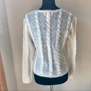 Cable Knit Sweater Mohair Wool Blend REFERENCE POINT Off White Cream Sheer Knit