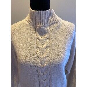 Cable Knit Sweater Turtleneck Size Large Tan Beige Woman’s Soft Loose Knit