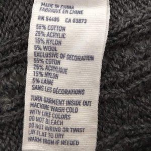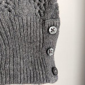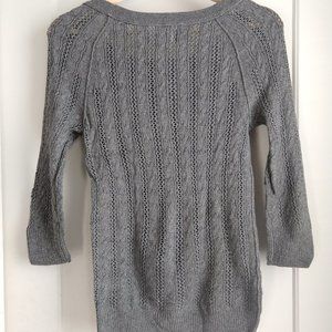 Cozy medium knit, charcoal grey sweater with button detailing on 3/4 sleeves. Gently used, excellent condition.