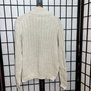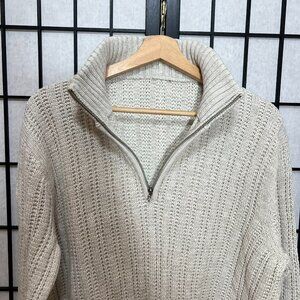 Cable Knitted Collared Sweater Pullover Classic 1/4 zip Tan Men S/M