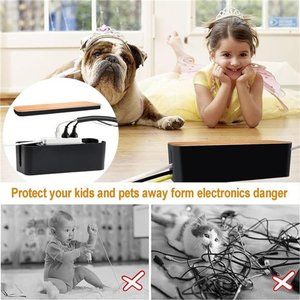 🧿【Three Sizes Cable Management Boxes for Power Strip and Cables】--We all dream a safety and neat house, these surge protector box L(16.14" x 6.14" x 5.11")-M(12.59" x 5.31" x 4.52")-S(9.25" x 4.52" x 4.52") cord box hider/surge protector box can help you store all of your cables & outlet apparatuses including charger, multiple power strips, cords, adapters, HDMI cables, etc in one convenient & safe place and keep all your accessory cables always tidy and dust free.
